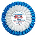 Широкая двухрядная розетка. Крепление булавка. Ширина 12 см. Центр вставка 56 мм